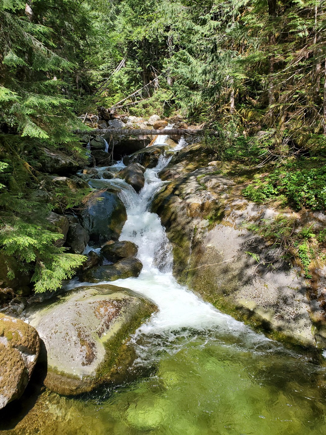 I've hiked the Dorothy Lake trail, which is the other end of this hike, and was always curious about Otter Falls. So on a late start I headed out, but still found parking at 10 am on a Sunday. I listed the road as rough, but it's only the part passed the bridge at Garfield Ledge; if you have kids with you they they will love all the bouncing around in te car!
