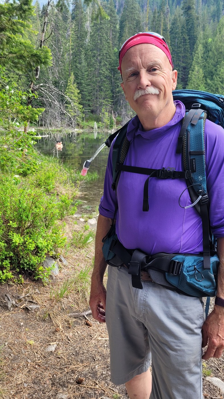 A hiker on another hike mentioned Hidden Lake would be one we'd like. Well she was right. It's a short 2 mile RT hike in the cool of the shaded forest on an otherwise very hot day. There's barely EG, 260'. The trail is in great condition, no roots or rocks to speak of. The lake is quiet and beautiful with several areas to hang out along the shore. To go farther around the lake, you have to cross an assortment of logs that look a little sketchy over the creek that is the outfall for the lake. We didn't try it as we found a nice spot to sit and have a snack without crossing it. This was our backup hike when we found the heat too much at Icicle Ridge. It was heading toward 88 degrees so we bailed about half way. So off we went to find Hidden Lake. It's very close to Lake Wenatchee State Park but very quiet and serene. If you just want to stretch your legs and have a little time, it's not too far off Hwy 2 at Coles Corner.