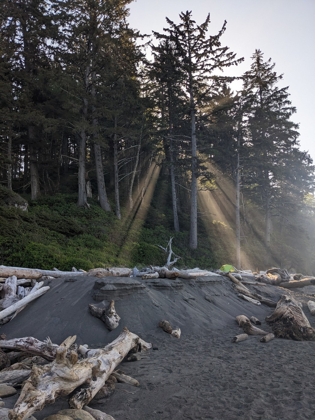 On the other side we were rewarded with more sea stacks and a long flat sandy beach. From here the trail stretches on for miles, all the way to Oil City if you get backpacking permits. We enjoyed the beach for a little bit and turned back.