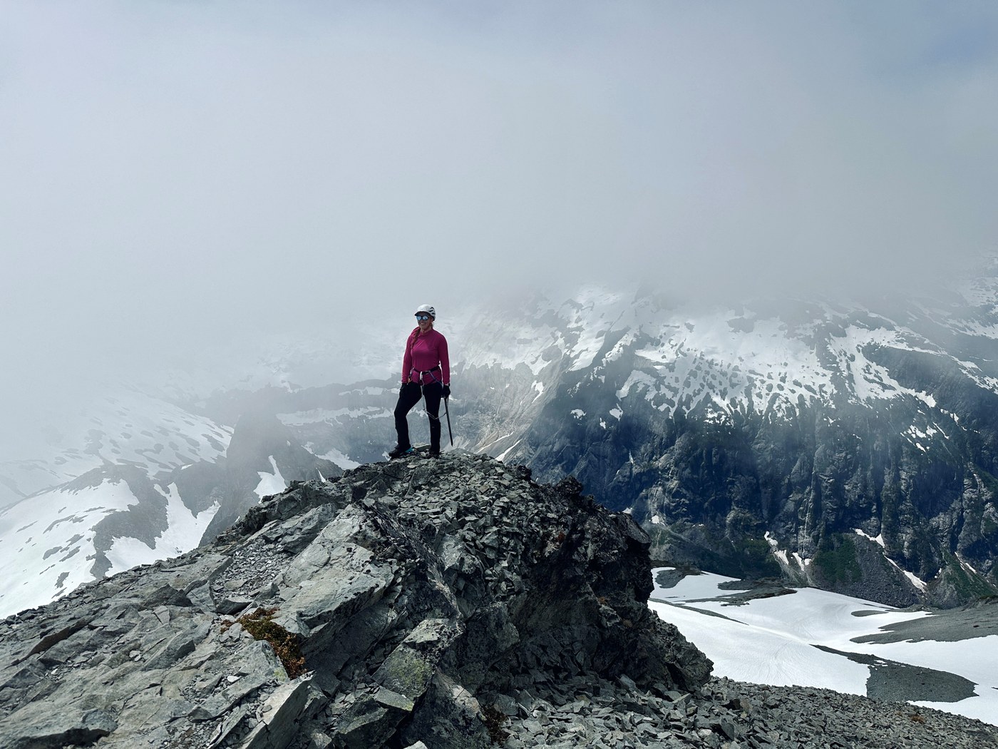 For anyone who wants to summit Ruth but is intimidated by ropes and glaciers, this climb can be turned into a very approachable day hike/climb if you traverse the mountain's left side (as you're approaching it) to make the SE ridge, and climb the snowfields on that side. Ice axe + crampons is all you need. This avoids the north facing glacier that most climb. Ideal window to do it is when some rocks are beginning to peek through the snow on the eastern slopes of the mountain; later in the summer when it's mostly melted out it becomes a sketchy rock scramble situation.