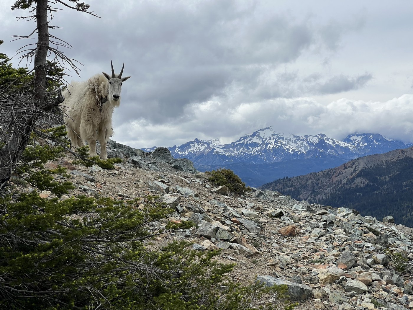 Trail is snow free except for 2-3 small patches on the flat section. No major blow downs. Ran into a mountain goat at the pass above the lake, it didn’t seem aggressive but a good reminder that it’s smart to keep dogs leashed.