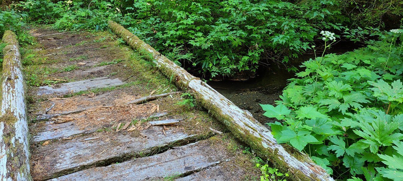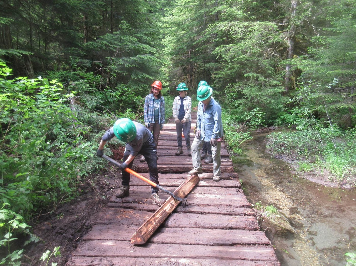 BCHW’s Tony Karniss organized the roundup of trail workers, cooks, and pack stock riders for repairing old bridge decking on the Green River trail, Trail 213. WTA's Stasia Honnold provided administrative logistics and paid us a working visit.