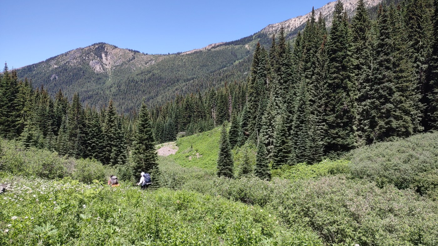 On this trail flags are your friend: rather easy to discern and well-tread the first few miles and still quite clear towards the Pass, but difficult to navigate at numerous points between. We never would have made it without somebody before us flagging the route.