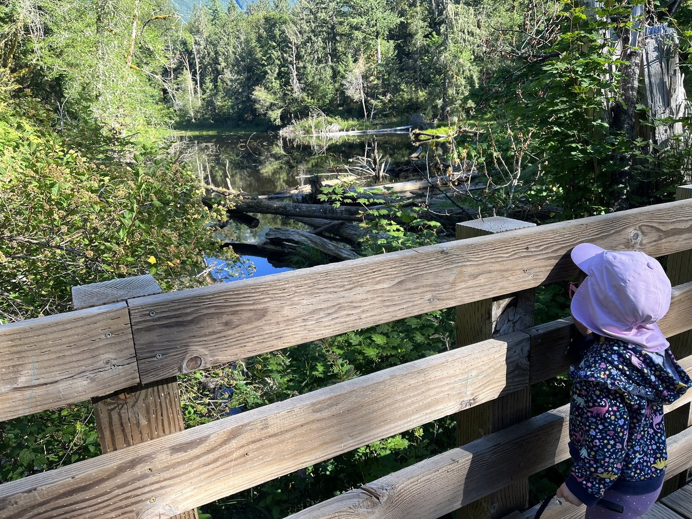 Overall a great distance for my 3 year old (1.8 miles) and enough interesting things (good views, cool log benches to sit on, berries, frogs, big old trees, squirrels, and birds) to keep her engaged the whole time with only minimal snack bribery.