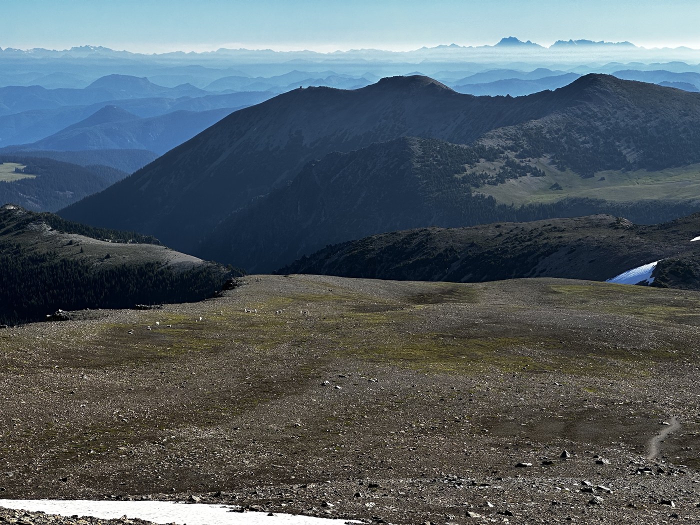 The stretch between Second and Third Burroughs is its own reward. There was a longer but more benign section of snow halfway up, and a large number of mountain goats resting a comfortable distance off the trail to the south.