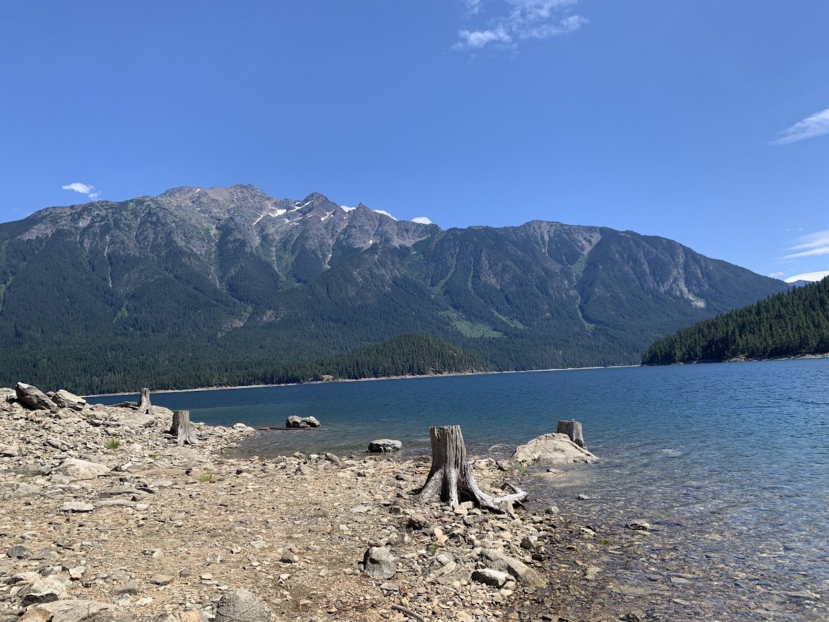 Gained early access for the NCNP backcountry permits and picked Big Beaver camp for a two night stay from Friday to Sunday to see how the pup would do backpacking. Road in is easy as it is all pavement. Parking is a bit of a mess as this is the parking lot for the Ross Lake Resort so it can be extremely busy. We lucked out and pulled into the final two spots available. Trail starts out with a bit of a drop and that makes the end of the trip pretty brutal, especially with heavy packs. Directions are clear on where to go while getting to and crossing the Dam. Honestly pretty spectacular to walk across the dam and experience just how large it is. Once across the dam the trail is in great shape and easy to follow. Maybe a total of 3 downed trees all the way to Big Beaver camp and they were all easy to step over. With the dry conditions do note that the trail is dry and there are no water sources until about 5 miles in and then that one is pretty light at the moment. It isn't until Pierce creek that there is a substantial water source before getting to the lake itself where water is plentiful. Take this into account especially for the way back since your water source is in the first two miles and then nothing until you are back to the car. We arrived at camp and was surprised to see no one else out there and so we had first pick on sites. Pretty surreal to share the entire campground with only two other campers for the night. Reports before are spot on in saying that this is basically a car campground. Great toilets stocked with TP and handsantizer, Bear boxes that fit all of our backpacks, fire pits and a picnic table. It was an incredible site to spend the weekend at. On Saturday we did some exploring up the big beaver trail. We only went a few miles but it was beautiful and there were no trail issues. We spoke with a man who had done the big beaver/little beaver loop and he stated that the little beaver side was a mess but smooth sailing on the big beaver side. As we made our way back to camp we noticed it began to fill up. Lots of kayakers, backpackers and boaters which was fun to see. Big beaver falls was the highlight of the area and a great area to hang out and filter your water. Water was great for swimming and the breeze coming off the mountains made for a less buggy weekend! All in all, a great weekend getaway!