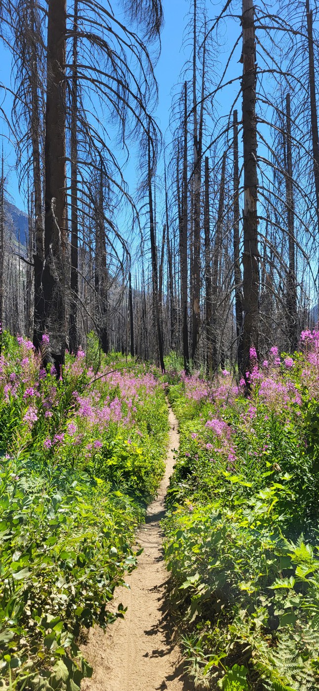 If you own a mountain bike, I highly recommend biking the first 3.5 miles to the turn-off to Myrtle lake. Not just because of this is a gentle sloping beginning mountain bike trail that cuts the time up to the lake in half, but because of the 20 minutes of bliss it takes to complete the last 3.5 miles returning after the long slog through the burned out forest.