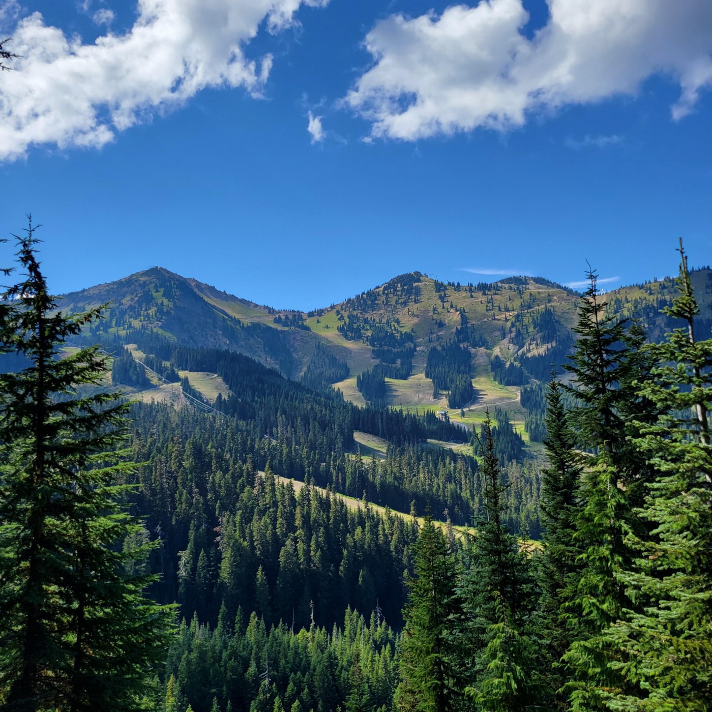 We are happy to be in Rainier country for a few days of hiking, and took this trail as a warmup after driving from Bellingham for four hours. Leaving from the Crystal Mountain Ski area, we took the Silver Creek trail to Henskin Lake, a 6 mile RT jaunt. The first .3 miles is a steep, rocky road bed, which felt almost exhilarating after our drive. Wildflowers were abloom in the meadow that came after, including paintbrush, pearly everlasting, some lupine, and a few columbine, also penstemon in places. From this meadowy stretch, there are nice views of the ski slopes and foothills, with shadows cast by the clouds. Henskin is another couple miles from the meadow, and though you gain 1000 feet and the trail is dry and scrabbly in places, it feels like an easy-ish hike-- if you're used to hiking. The lake was lovely today, peaceful, green. Saw only one group of 5, a family visiting from Israel. The man was downright ecstatic at how beautiful the lake was, throwing up his hands and laughing in glee. He and a young son plunged in and screeched with joy, the water colder, I'm sure , than anything at home. We live in an amazing place, indeed. Happy and safe hiking, Everyone!