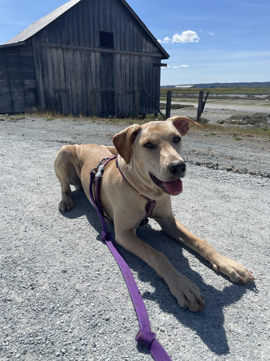 Maizie and I had a fantastic time walking along the Padilla bay trail! It was the perfect temperature outside for having minimal shade so it was an extremely nice spot to walk today! The walk itself was very flat and definitely well maintained. It stayed flat and gravely while winding through different views including some nice buildings, tractors working in the fields and the water. There’s more than enough room for people to walk on both sides or have bikers pass safely. The views are very nice and the whole vibe is very serene. It was a wonderful choice for a calming walk today that was a bit outside of our usual routine! Maizie and I really enjoyed visiting today and can’t wait to go back for another walk another day!