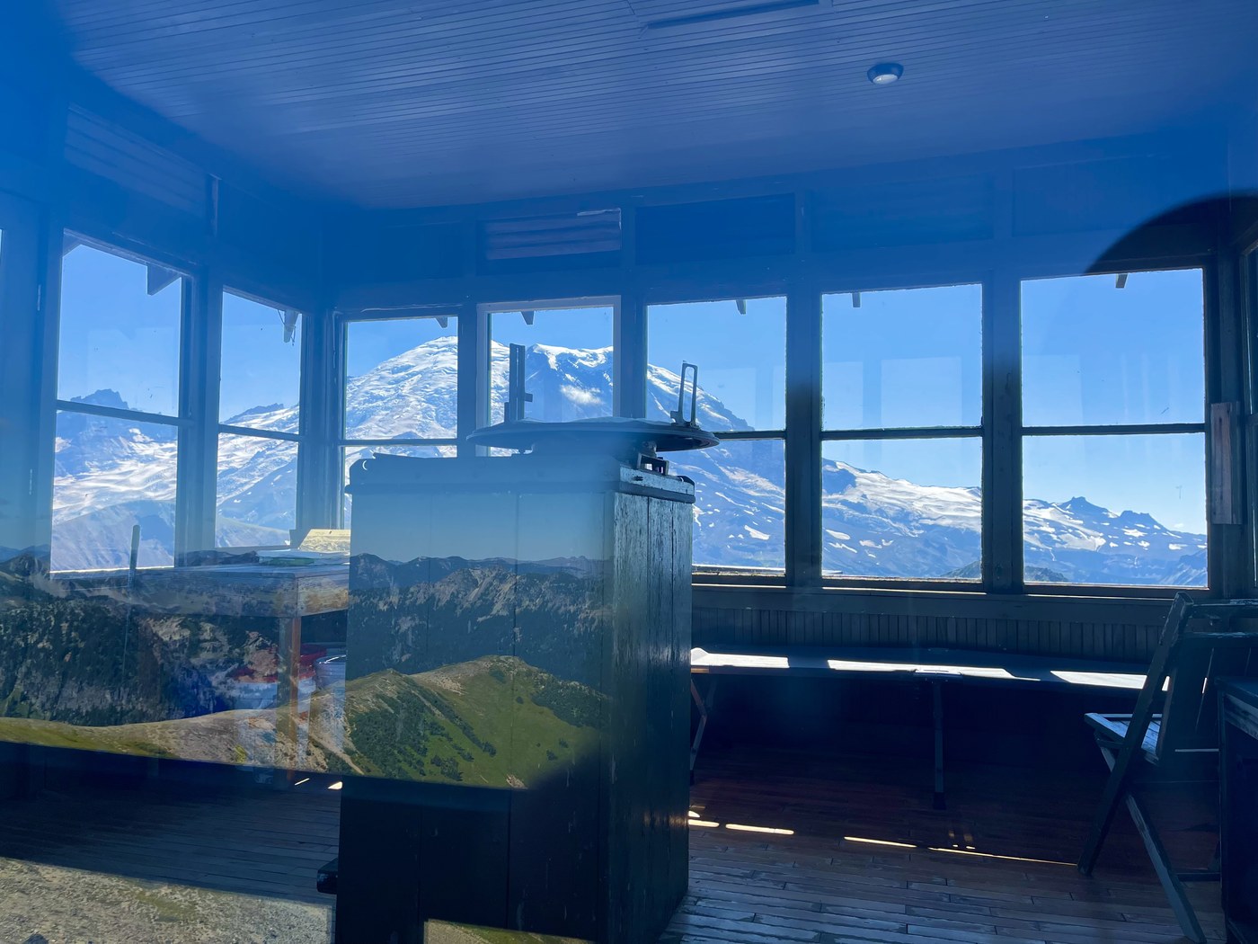 Long wait @ Park entrance, (1 hr +). Lot's of people on trail, more at parking lot area. Trail nice & steady past Frozen Lake, which has the least amount of snow I have ever seen at this time of year. (almost all gone, one patch on North side, smaller patch on the west side.) MT Goat, male, between Frozen Lake & Sunrise. Very dry.