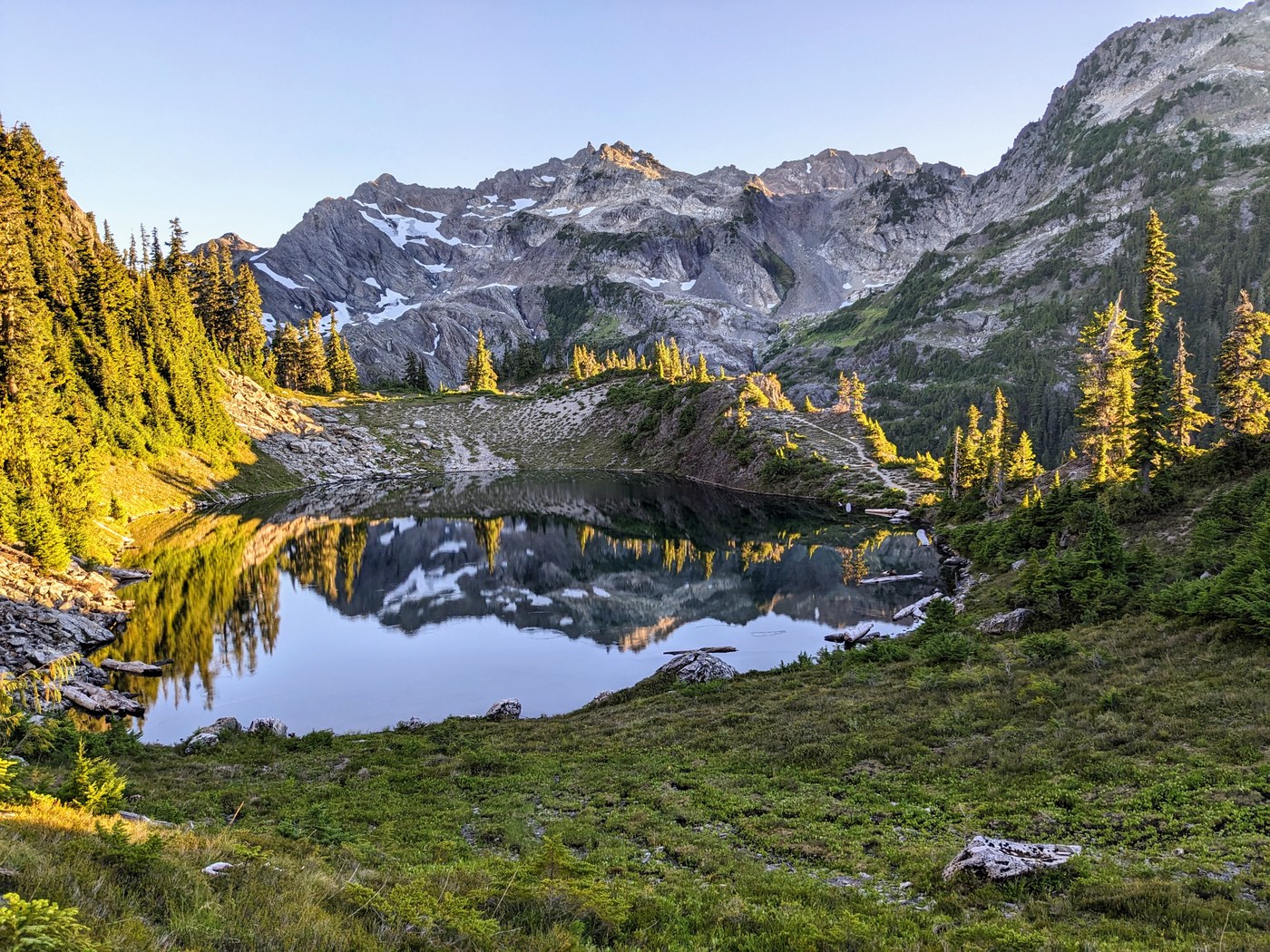 Soon you’ll emerge into the open and climb to increasingly beautiful views. Before you know it you’re at the lakes and a couple bare-ground campsites if you’re staying over. Leave extra time for digging catholes; the rocky ground makes it a slow 6-8”. We saw 3 bears in the 2 days we were there - one adult and two juveniles. They obligingly walked away when we asked but we made sure our food hang was high/out & well away from camp. The bugs when we went were annoying enough that we used our net, mostly flies and wasps, mosquitoes weren’t bad. There were some of the biggest horseflies I've ever seen here. The challenges were totally worth it for the sweeping views, nightly starscapes, and stellar swimming in the company of Cascade frogs and Northwestern salamanders.