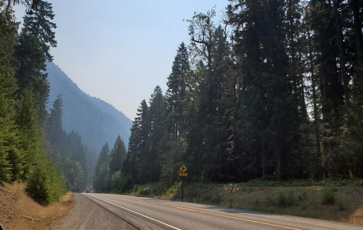 Air was relatively clear when we left, but as we got closer even The Mountain disappeared in the smoke. We pulled off along 410 with a couple cars and headed up. I could taste the smoke on the tip of my tongue - almost burning plastic-like. It dried our mouths, so we kept hydrated. Trail is in great shape. No obstructions and only a little bit of dust near the junction with Palisades. We saw a group of 5 and a couple with their dog all at the same time and a pair of bikers were up at the junction. We did eventually got used to the smoke smell. As we entered the burn area, we started seeing fireweed, but it was odd as there were patches of dying fireweed with one or two flowering stalks right in the middle. The higher we got, the more the flowers prevailed. Even saw some Aster, Lupine, and even some baneberry. It was great actually seeing some flowers, but they were definitely on their way out. No views today, but a great hike and a nice contrast from last week on Old Si.