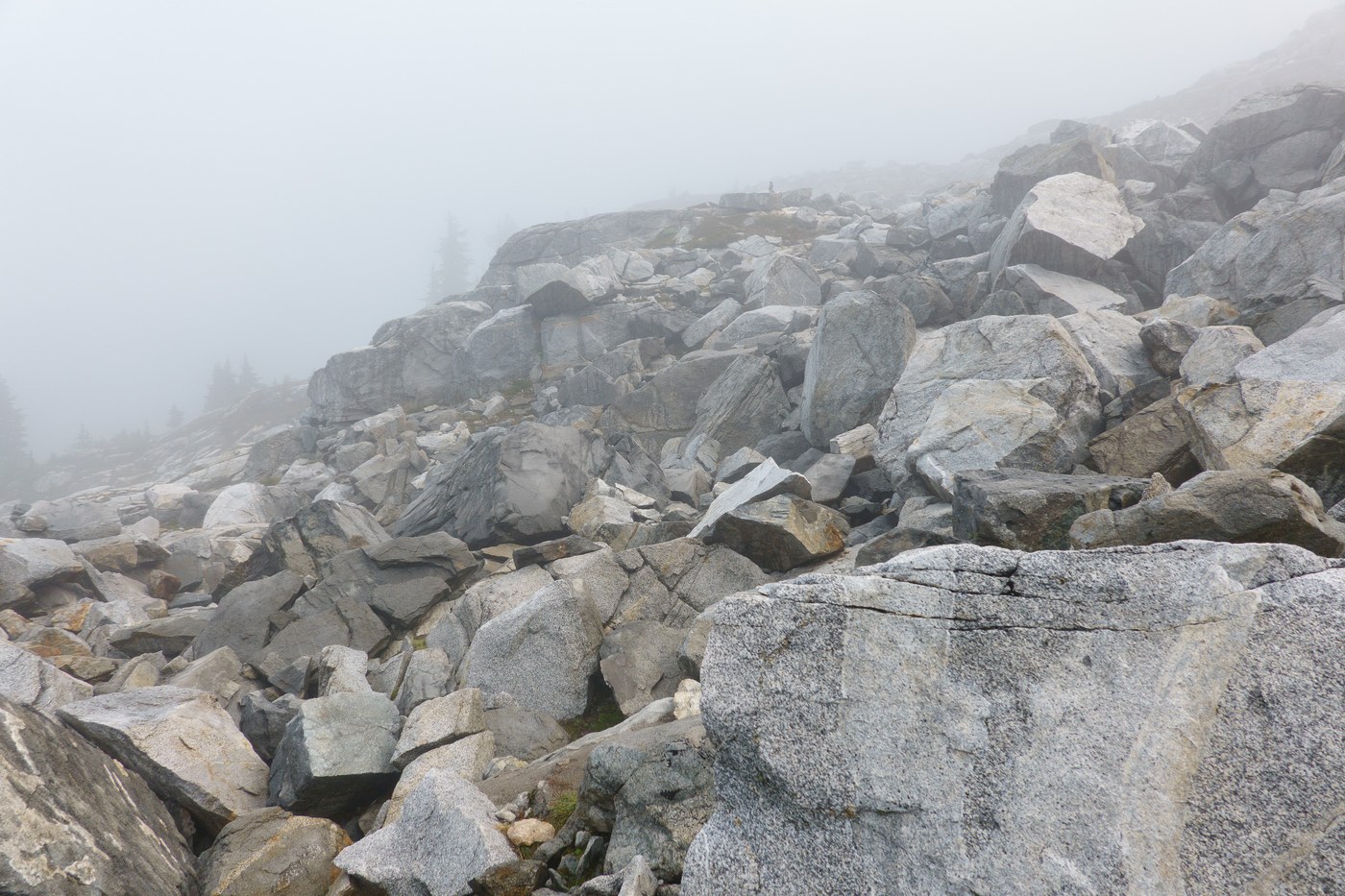 Trail Conditions. Tunnel Creek wasn't the smoothest trail, but had no obstacles. No issues with the Pacific Crest Trail to Trap Pass. The boot path to Thunder Mountain Lakes was easy to follow at first, but less obvious where it crossed boulder fields. Path of least resistance + spotting cairns worked for me, but could be a challenge when visibility is poor. Nimbus Mountain was a short and easy, un-exposed scramble (as long as you ignore the summit block). In addition to the lakes, there were several small, transient-looking streams along Tunnel Creek and the Pacific Crest Trail. Surprised to have good cell signal on Nimbus Mountain (but not below anywhere).