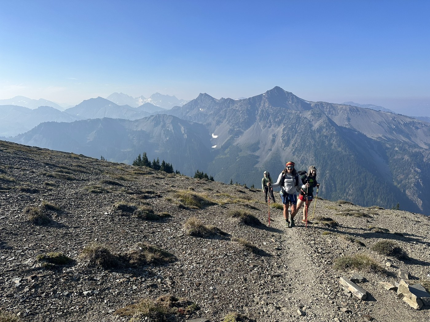 We did a South to North Traverse across the east side of Olympic National Park starting at Staircase Campground and ending at Obstruction Point. We did it as a 4 day 3 night backpack with a key swap with another group coming from the north who we met and camped with on night 2. It was 69 miles total with about 20,000 feet of climbing. It was amazing, beautiful, challenging and remote.