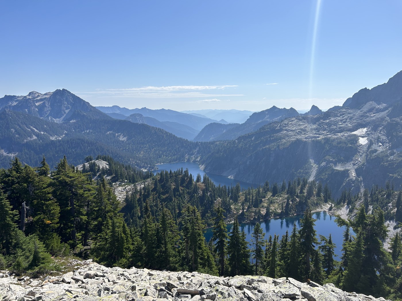I generally prefer lake destinations over peaks, but the short jaunt from Gem Lake to the peak of Wright Mountain was worth the moderate extra effort (if you are accustomed to “hard” rated hikes). It was more dirt trail than rocky scramble, but there was some definite scrambling near the top. My dachshund did it with only a few boosts needed.