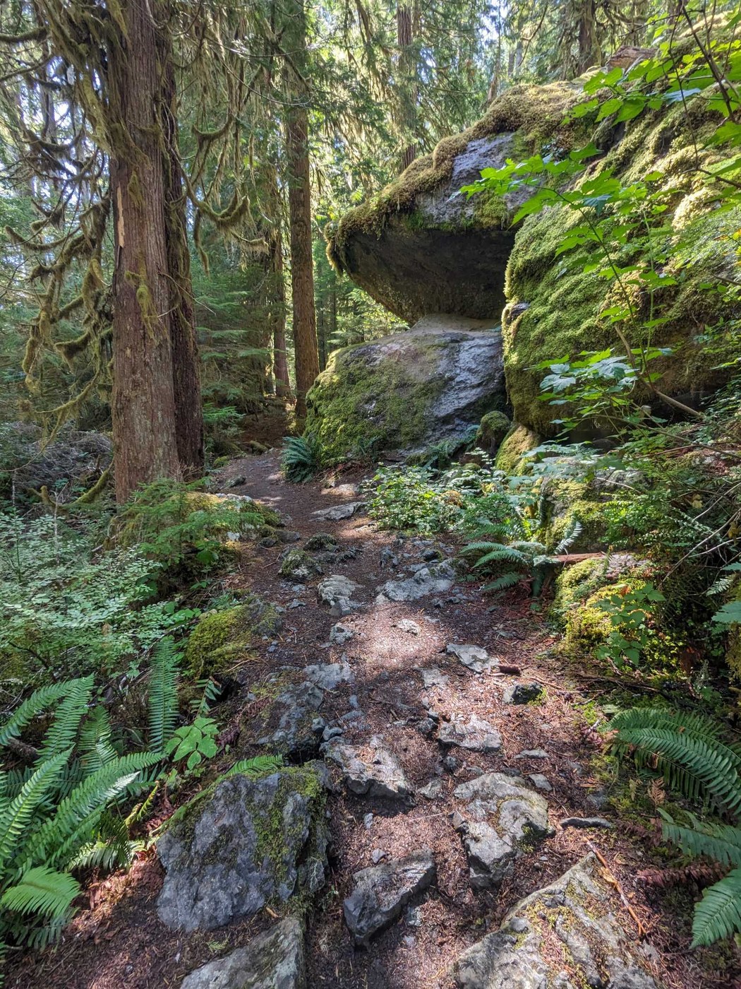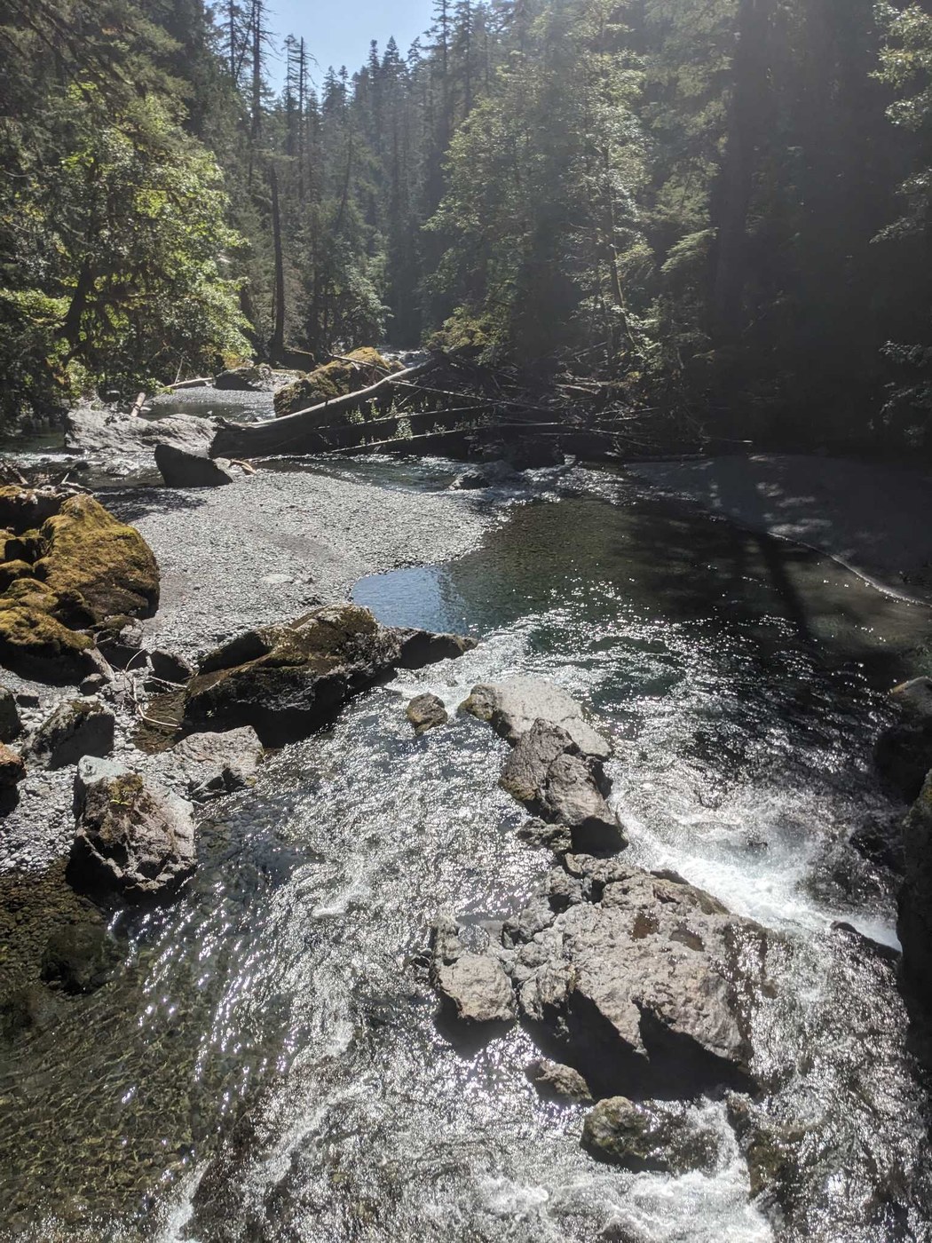 We hiked to Spike Camp and just a little bit beyond. There was a tough spot in the beginning but over all the trail followed a slow, gentle grade up. There is a bathroom available at Spike Camp -- but bring your own toilet paper. There were quite a few loose rocks on the surface of the trail which were a tripping hazard. On our return we took the Staircase Rapids trail which loops back to the same trailhead.