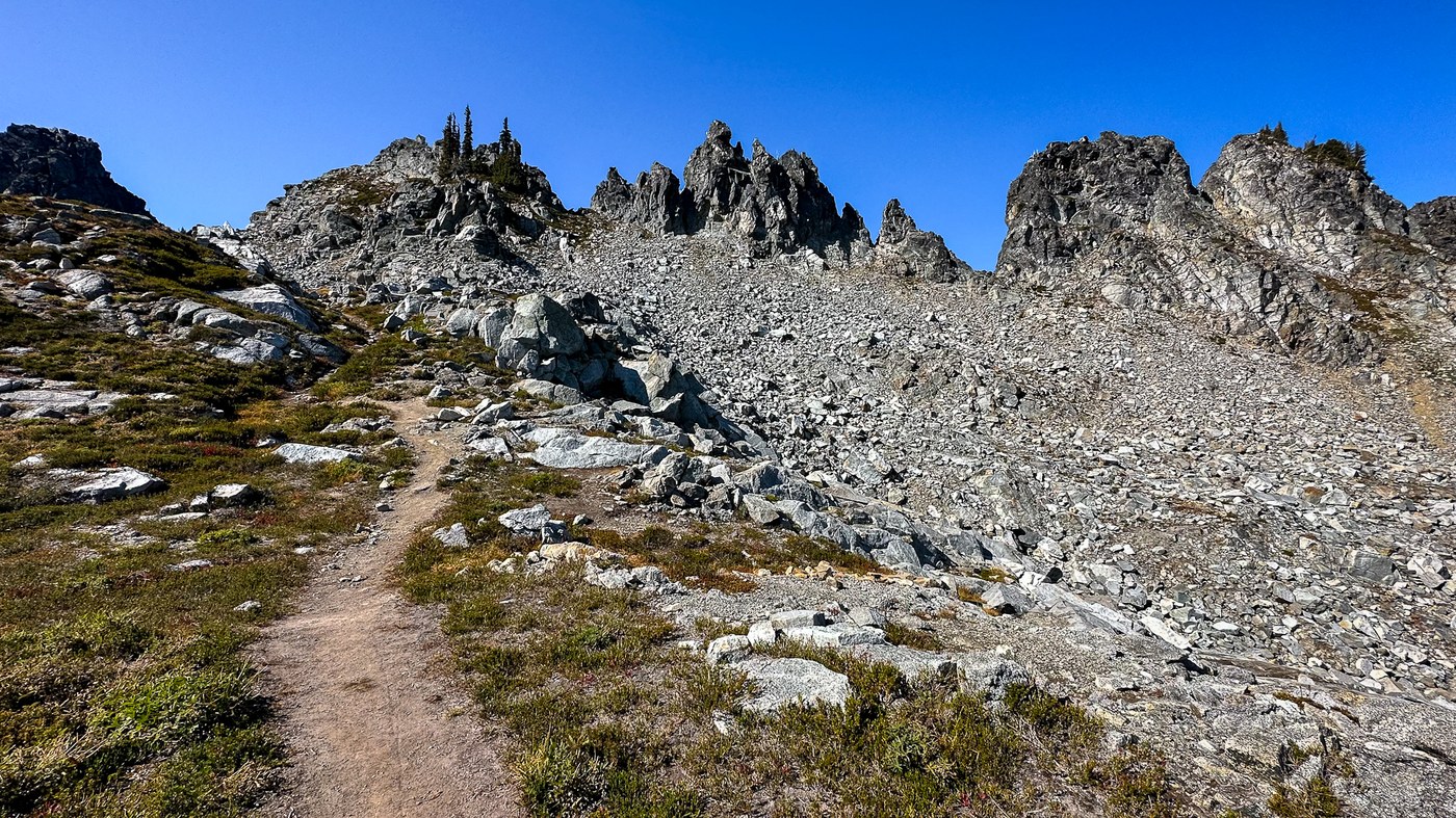 Solo overnight trip to Thunder Mountain Lakes via Tunnel Creek. I started around 1pm with clear skies and made it to the upper lake around 6pm with fog so thick I couldn't see 100 yards ahead of me. The trail was not too difficult to navigate, even in the fog. Cairns were easy to spot and the boulder fields not too tedious.