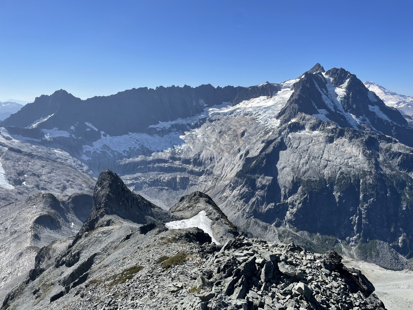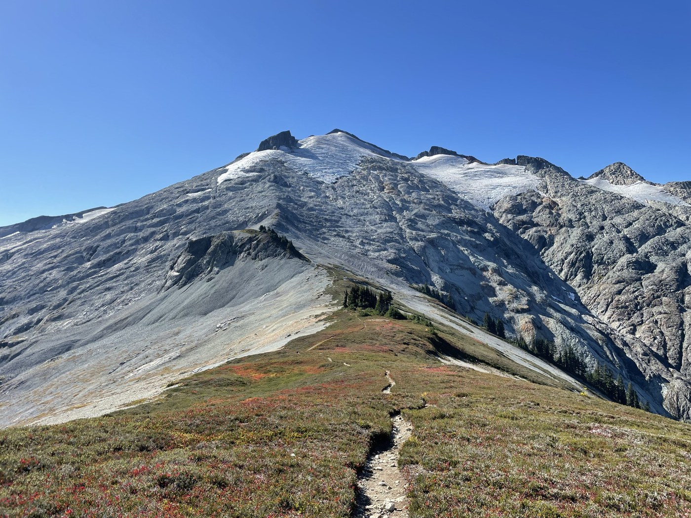 I don’t think this used to be possible, but after the incredible snow and ice melt over the last few years, we hiked to the summit of Ruth Mountain in trail runners and did not need to touch the glacier or a single patch of snow the entire way up.