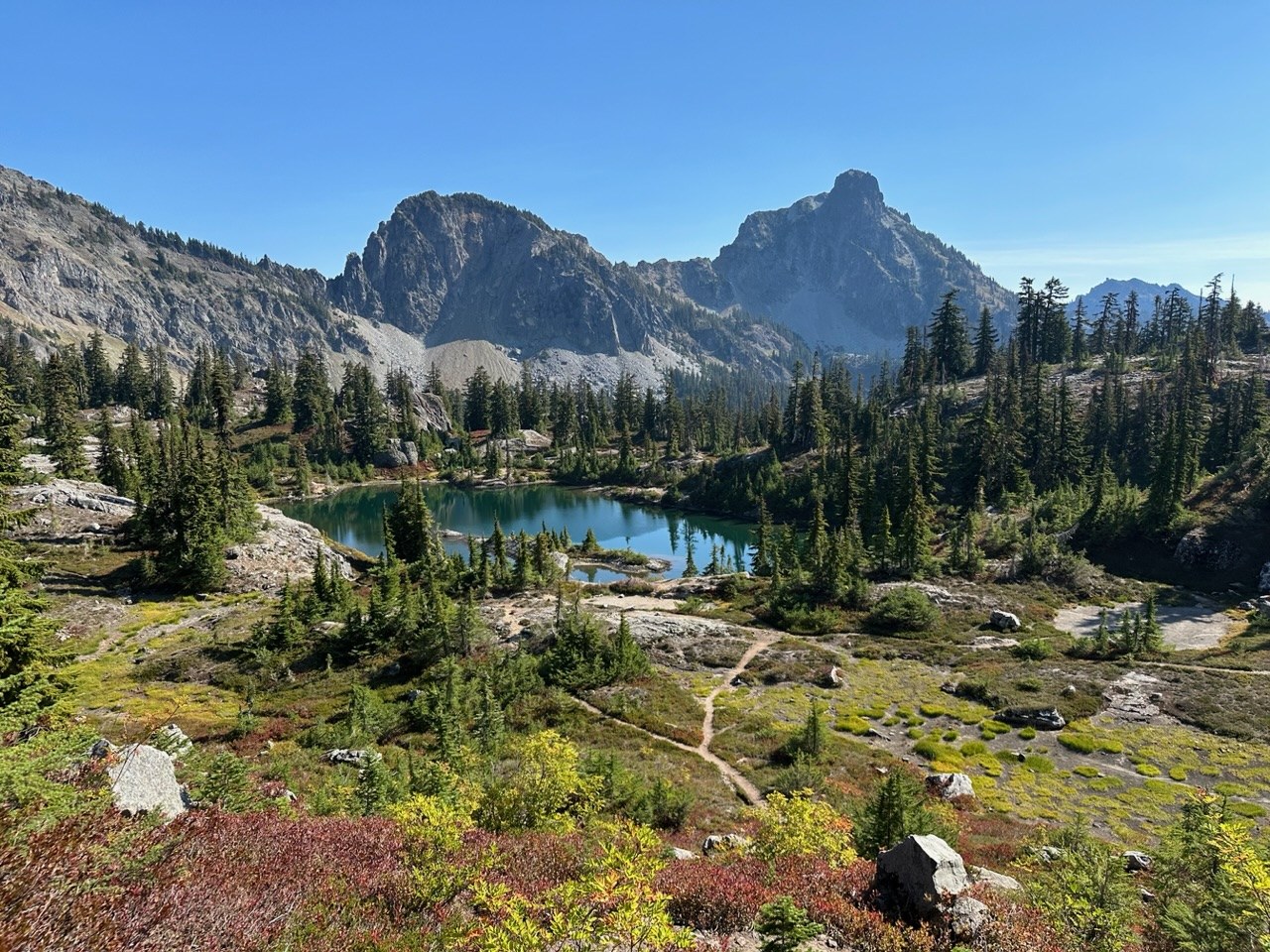 Oh my goodness! We backpacked up the trail to the lakes. The off leash dogs up and down the large jagged rocks challenged my balance and about pushed me off trail multiple times.