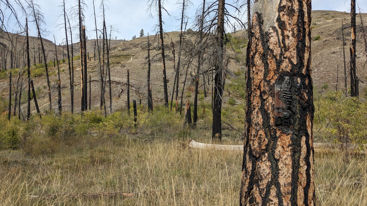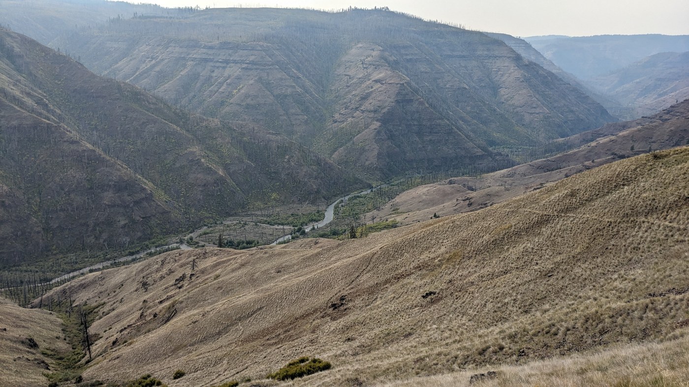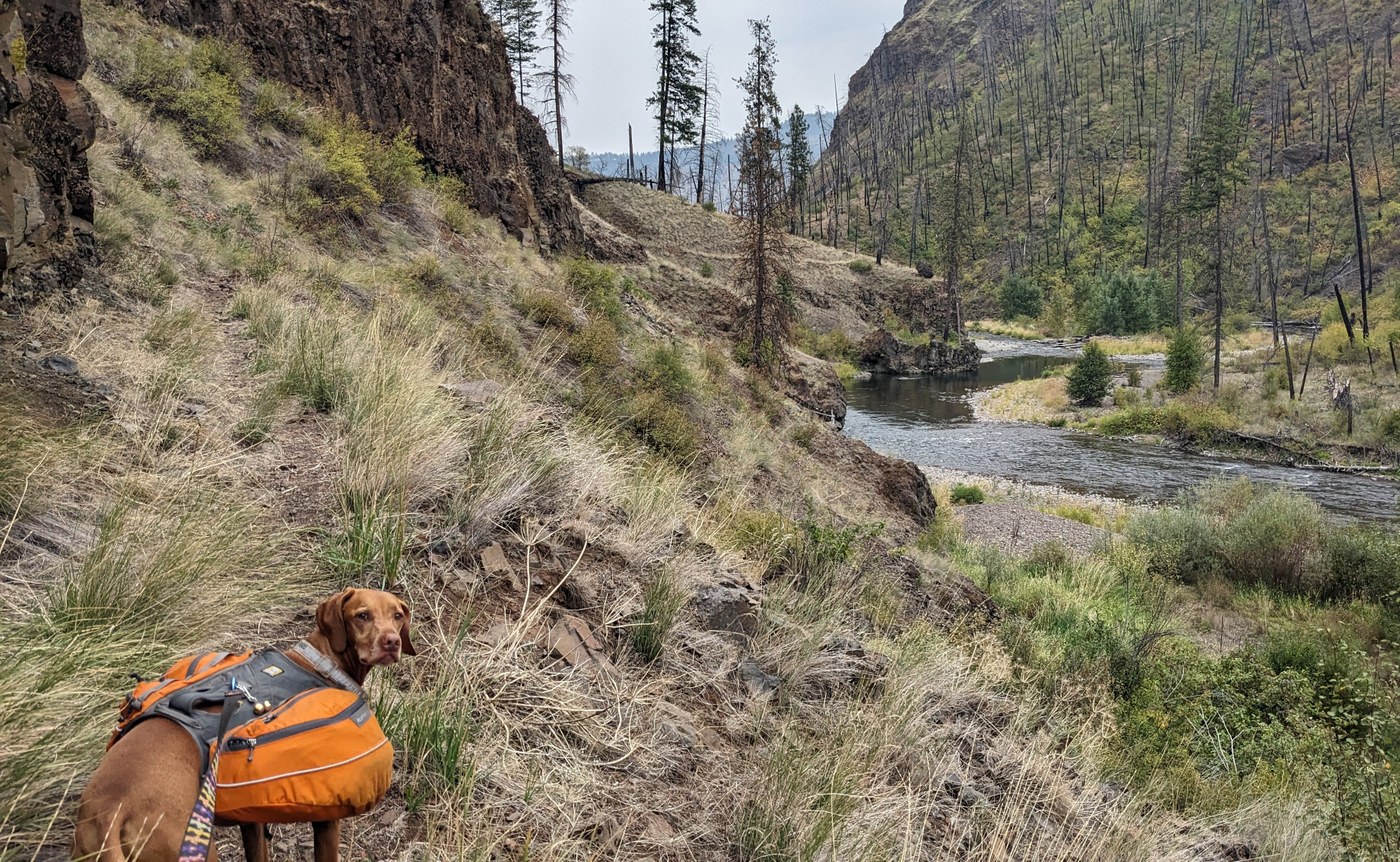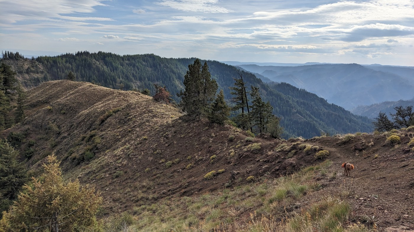 Smooth Ridge: the trail turnoff from the river is sort-of signed, look for the remaining piece of a board nailed to a tree. The trail is visible going up the hill, but you'll have to look for where to get on it as the tread doesn't come all the way down to meet the Wehana R trail. Once on it, it is littered with apple-sized ankle rolling rocks and climbs steeply to the top of the ridge, where it enters the burned area and disappears within the thickly regrown underbrush. Yes you can follow your GPS further, but you'll find yourself struggling over black logs and scratched up from the rose bushes all the way to Twin Springs. Not recommended. Then it only becomes marginally better, with the trail occasionally visible between logs until you reach Weller Butte. From Weller Butte to Oregon Butte the trail is in good condition and even had recent brushing work done closer to Oregon Butte turnoff.