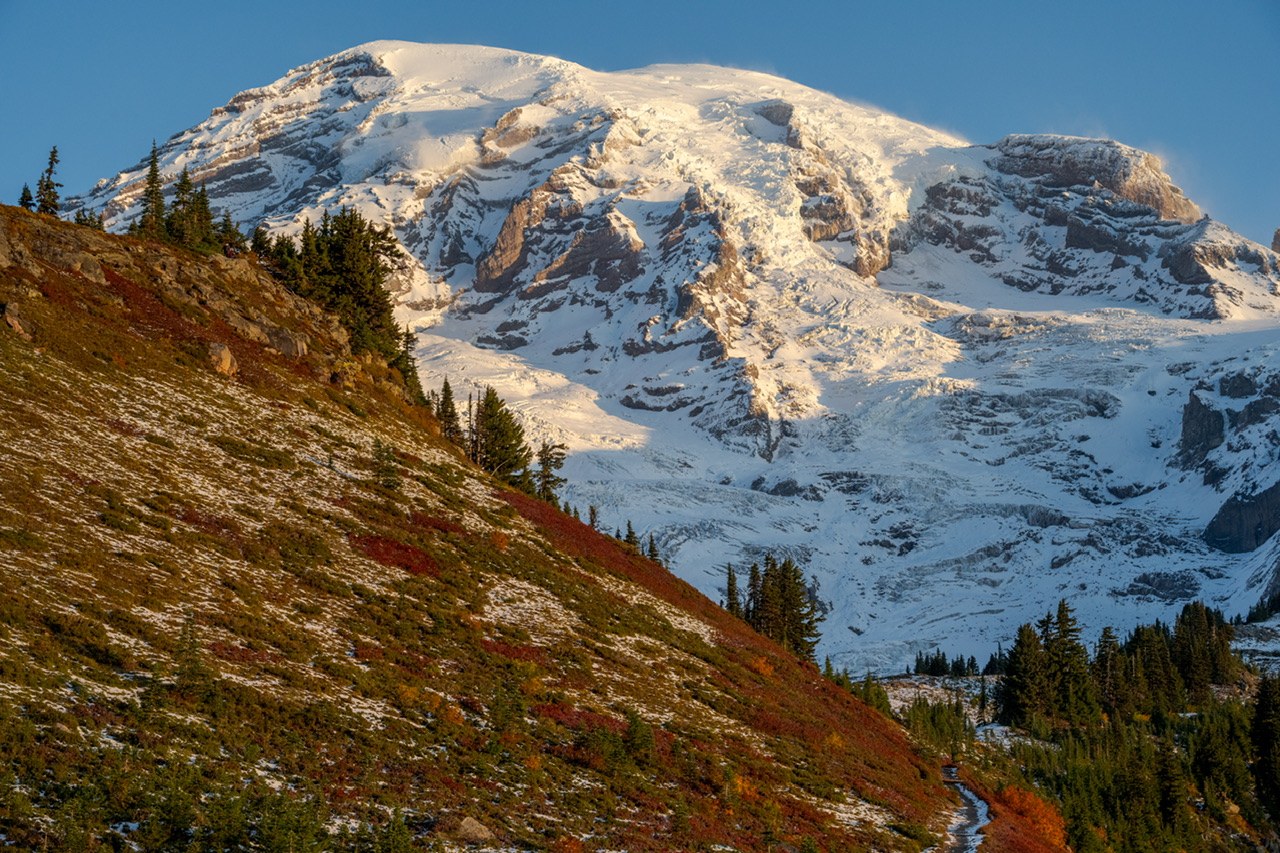 We arrived very early to beat the crowds. We pulled in around 6AM, and started hiking around 6:30. It was cold and we could tell things were frosty - I think our car thermometer read right around 32 when we pulled in. Our effort today was to hike some sections of Paradise trails that we hadn’t covered before so we made up our own kind of route.