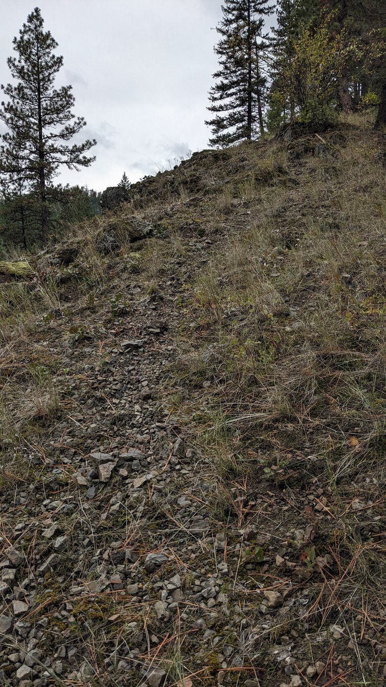 The Dexter Ridge trail starts right at the junction of the Wenaha River Trail and the Slick Ear Trail, but it is not marked/signed. Just head up the ridge. The trail will become visible as you climb. Moreso when the ridge is narrow than when it is wide. But just follow the ridge up and it will keep appearing. It is steep and has false summits, but nice views. Some brushy areas, but you can usually go around them. At the top of the ridge, I met a couple of mountain goats. Wait, not the top, climbing again. Then the trail starts to go down the other side. I would say that the trail officially ends at 5.3 miles from the bottom. At this point you are only about a half a mile from the road so you might choose to bushwhack through the burn but good luck finding any sign of a trail.