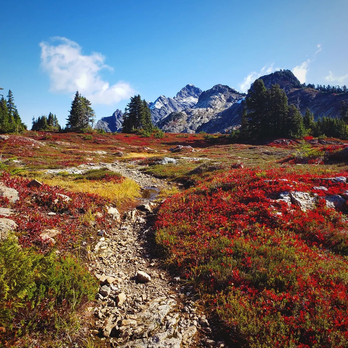 This one has been on my list for awhile and Im so glad I was able to get out and see it in its fall glory! Magnificent views, lots of variety along the trail. Can see views of mt baker, mt shukson, olympic mt range and mt rainier from the goat flats meadows. There was several camping spots at the meadows and several water sources from the start of the trailhead all the way to the lookout with the snow that blew in 1wk ago.