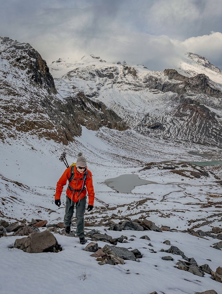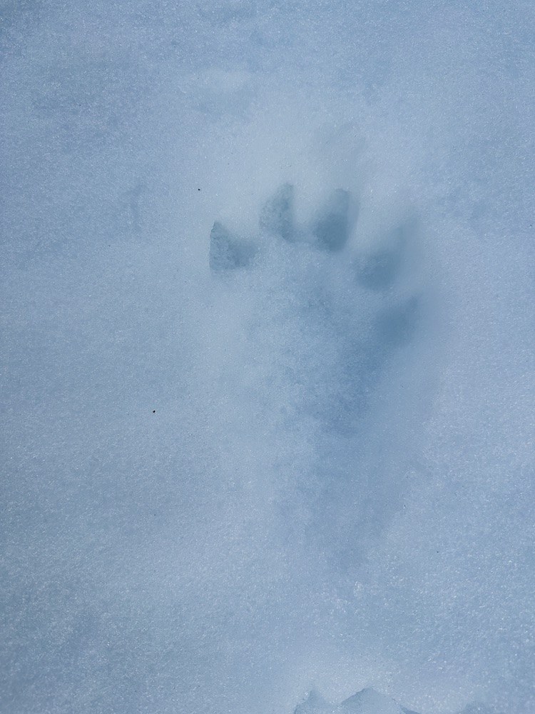The trail is in good shape except the bridge over the outlet from the tarns has been removed for the season and snow began at the tarns. It’s mostly possible to stay on trail, but the snow led to some wrong turns when it got deeper. Thankfully, we were guided by some big carnivore’s tracks so we quickly got back to the trail.