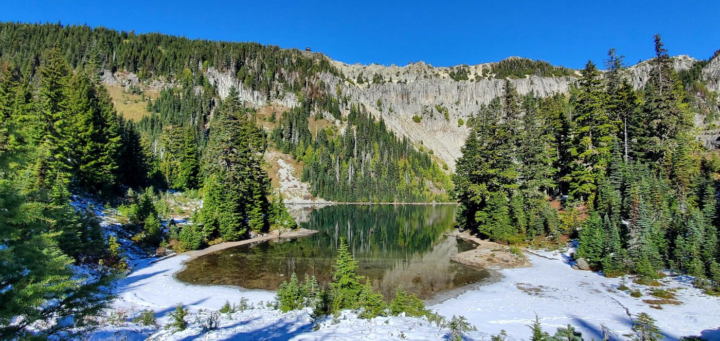 I did use spikes for the snowy trail portions on the way down, but only because I am not the nimblest of foot and will take extra traction on snowy downhill when I can get it. The two other people (yes, only TWO) I saw on the trail didn’t have traction either time I saw them (they passed me on our way up to Eunice Lake and then I ran into them as they were coming down from the lookout). One of them did mention thinking they needed to put their spikes back on, but they were wearing Air Jordans so… yeah.