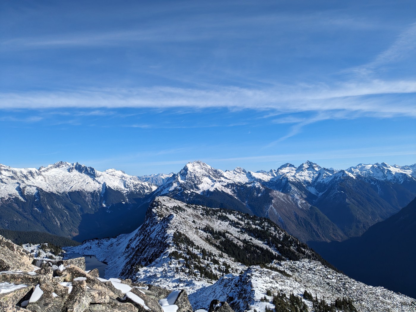 Took about 3 hours to get up to the lookout and 2 hours to hike back. The hike itself is lovely. Great views the whole way once you're out of the woods. I recommend having microspikes and hiking poles; I put my spikes on about halfway through. I did see people without them, but they were moving pretty slowly and carefully. The snow on the trail was packed down; no postholing. I enjoyed lunch at the saddle, left my pack there, then scrambled up to the lookout (which took about 15 minutes).