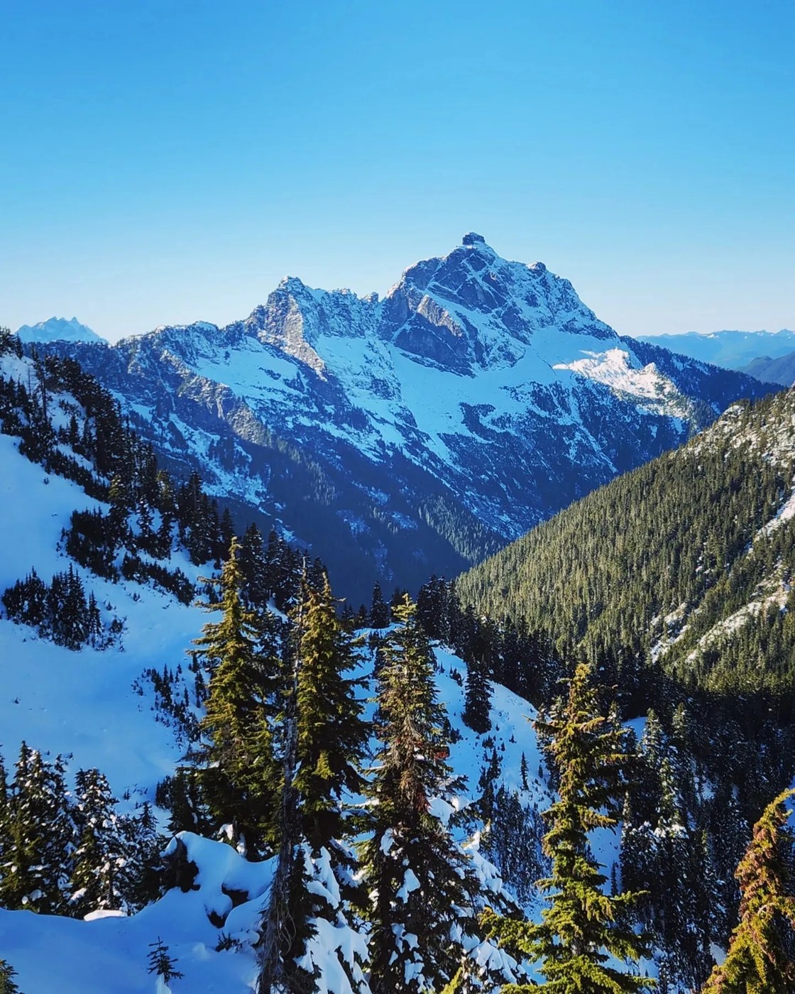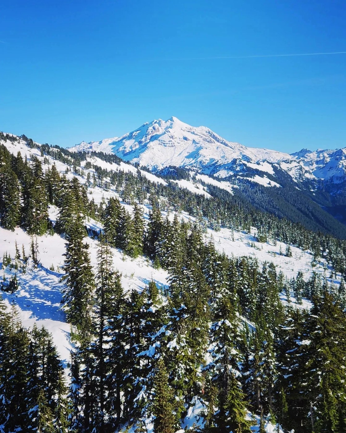 TRAIL: In good shape with a few blowdowns to step over, duck walk under or go around. A steady climb through the forest on well-graded switchbacks took us up over 2000' of gain to the Gap. The trail was snow-free for quite a ways before compact snow and ice took over. We put on microspikes sometime below Bingley Gap.