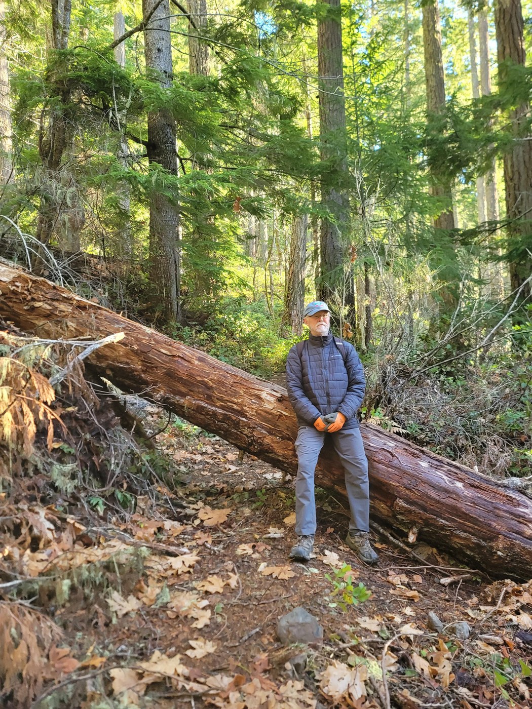 This was a scouting hike for Gray Wolf Trail Crew. We had fine weather, and found the trail to be in pretty good shape. Not much brush. There are 15 logs that are either leaning or down across the trail, but none pose significant obstacles. The photos for this trip report aren't scenic, they're just records of logs that require clearing.