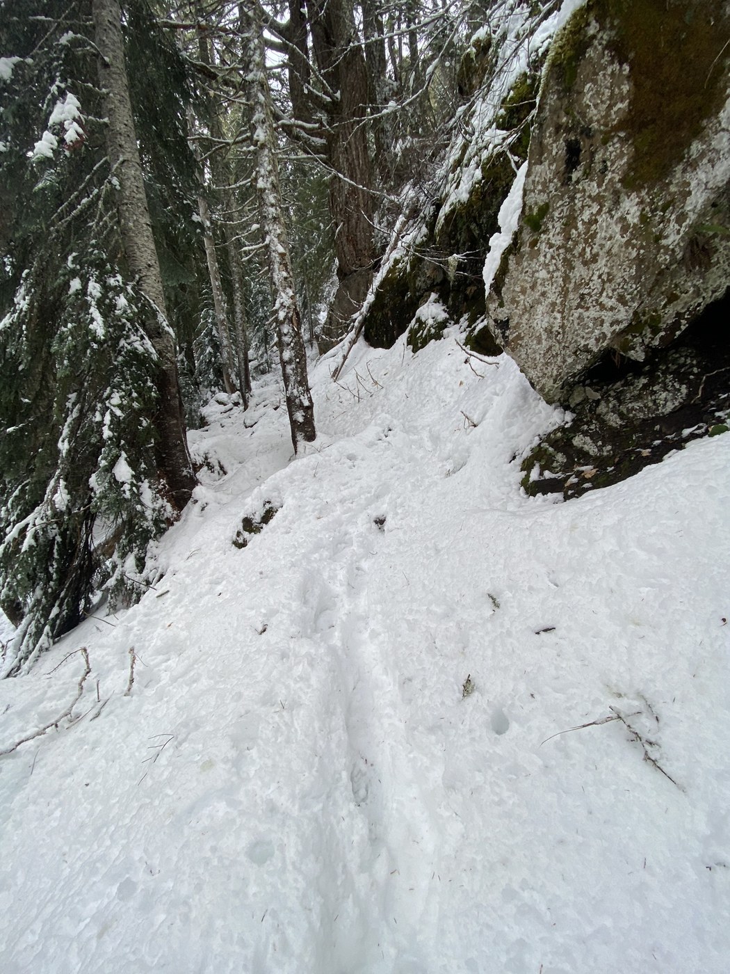 Trail started free of snow but once i reached the summit loop, the snow levels quickly rose. Crampons, gaiters and poles needed to navigate safely.
