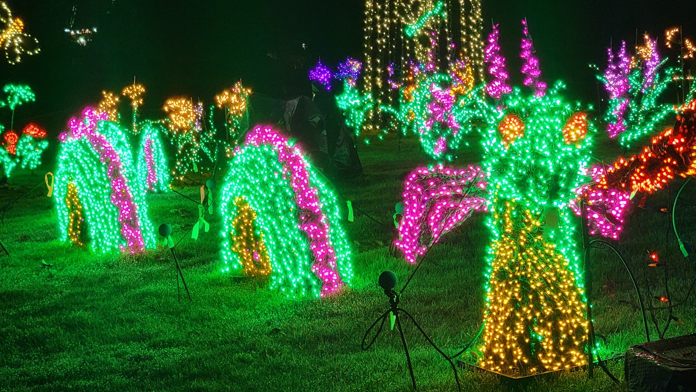 The garden itself was brilliantly lit. The walking track was short, I'd guess less than half a mile. My favorites were the dragon, banana slug and snail. We walked slowly and were done in about 35 minutes.