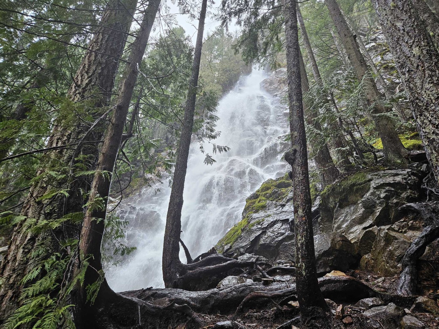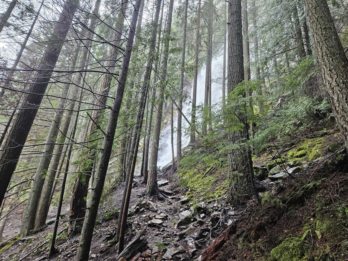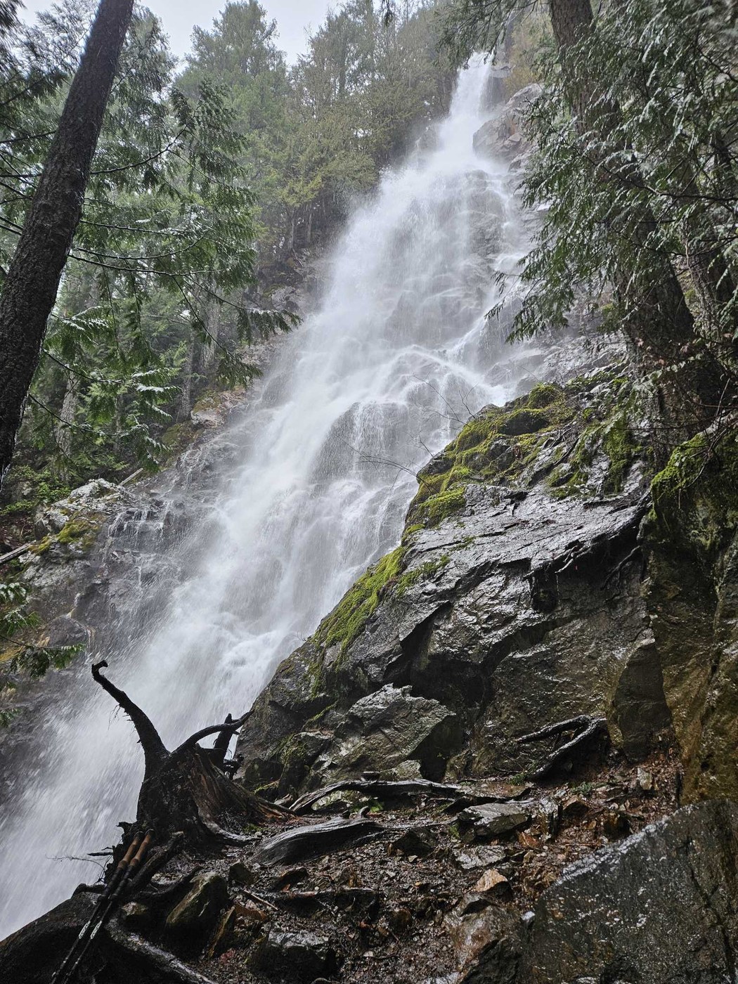 Started hike around 11 this morning. Parking lot was less than a quarter full. Trail was a little wet and muddy, but expected this time of year. We didn't see any snow all the way to the falls. On the way down we took the new bridge and hit the connector trail on the way down. WTA did an awesome job on this trail. I remember a few years ago you had to do a lot of route finding and crossing the falls was a challenge. Despite the constant rain and getting wet, the falls is overflowing and beautiful. Good time to go visit before the tempatures drop, and it freezes.
