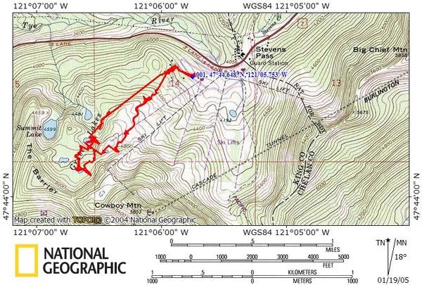 Grace Lakes. Stevens Pass Ski Area (Near Brooks Ski Lift). Janurary 19, 2005 (Wednesday). 8:35am-4:20pm. No Parking Pass Required.