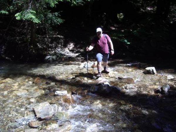I was worried about the trail being washed out 1 mile in, but not to worry because someone has done an excellent job of rerouting the trail above the washout. They did a superb job! I figured we would turn around at Red Creek since that is 4 miles in and the fact that I didn't want to get my socks and boots all wet. To my suprise, there is a very easy rock hop spot right in the middle of the old horse crossing. We didn't get our feet wet at all!