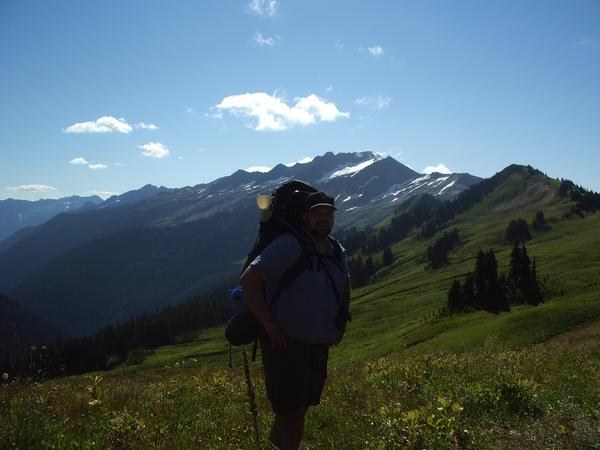 You can tell you've gotten somewhere once you connect with the PCT. We dropped our packs here and hiked up to Red Pass. The views on the way up to the Pass are excellent. Sloan Peak is very close as is the Monte Cristo Peaks. Soon you can see Rainier over Pilot Ridge.
