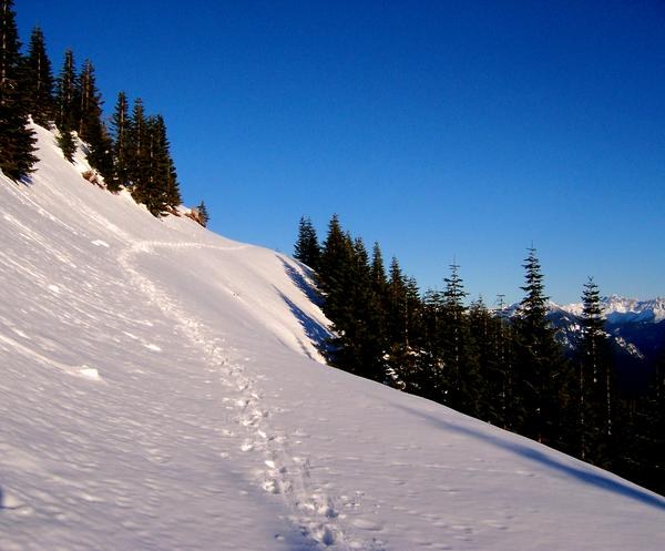 Above 3,900 feet, the tree cover started to lighten and the snow pack got heavier. The combination created the appearance of open travel, with less indication of any corridor.
