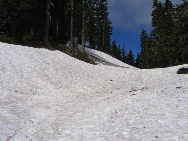 The actual trail was in good condition, although near Virgin Lake there was quite a lot of snow. I might not have found the route to Blanca Lake if it weren't for the handful of helpful ribbons tied to the trees marking the trail. At one point there is a tree limb with a ribbon in the middle of a snowfield pointing right, which indicates the trail turns right at that spot.
