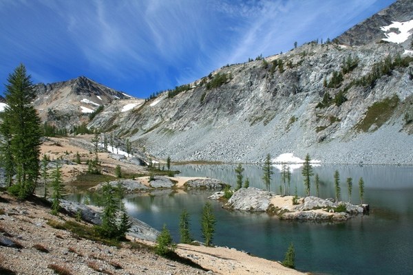 Lower Ice Lake was just as nice as upper Ice Lake. A pretty little island was a nice feature and views of the Entiat Mountains range as well as Spectacle Buttes were stunning. I had the place to myself and enjoyed myself hugely.