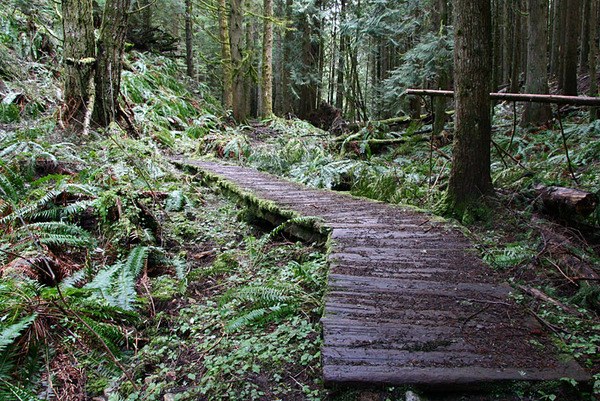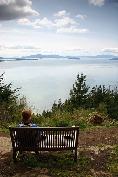 We continued downhill and climbed onto a big rock with a nice view out towards the sound. By now the clouds had lifted and it was warming nicely. After a nice break we pushed on down the connector trail and again met the main trail for the final descent back to the car, and onward to tulips.