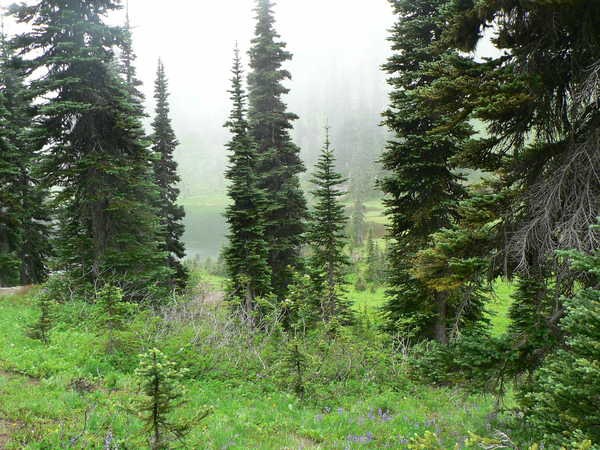 Seeking flowers and sun, we headed to Chinook Pass and the Sourdough Gap trail. We found all the flowers we could have wished for but the weather was a different matter. Accustomed to hiking in hot, sunny August conditions we had thankfully packed appropriate clothing for the misty, foggy trek. In the end, the weather made for a wonderful hike. We enjoyed watching the ebb and flow of the fog. The mist-covered abundant flowers were outstanding. The only time we were uncomfortable was in the middle of Sourdough Gap which acted like a wind tunnel. This trail is accurately billed as a mountain meadow hike. We enjoyed the views down the valley as we paralleled above 410 for the first 1 1/2 miles. Once we turned north the beautiful meadows began. We soon encountered Sheep Lake and the climb up to the gap. The flowers were fresh and colorful for the entire hike. There was one group already camping at the lake with another group coming in for the evening. There was only one other day hiking group; we met up at the top and compared notes on other hiking options beyond the gap. The trail is in great shape and we had no problems with bugs, however, that could change with warmer conditions. If you are looking for flowers, consider this hike soon - 6 miles round trip with about 1000 feet elevation gain.