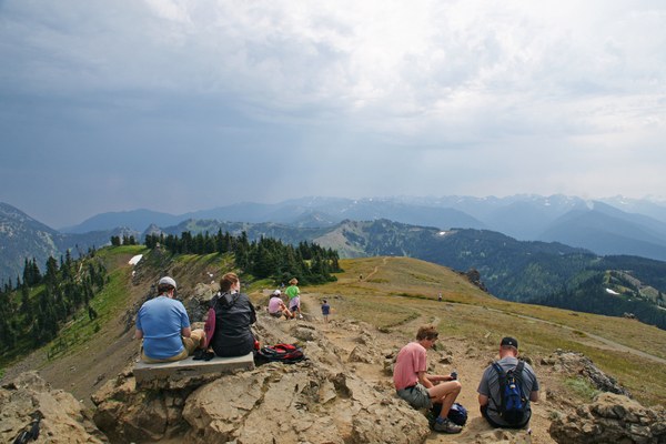 This is a short 3-mile hike that climbs up to the summit of Hurricane Hill (on the northwest end of Hurricane Ridge). From there, you have great views almost 360° - Port Angeles and Vancouver Island to the north, Hurricane Ridge, the Elwha River valley, Mt. Olympus and Mt. Carrie to the south and west.