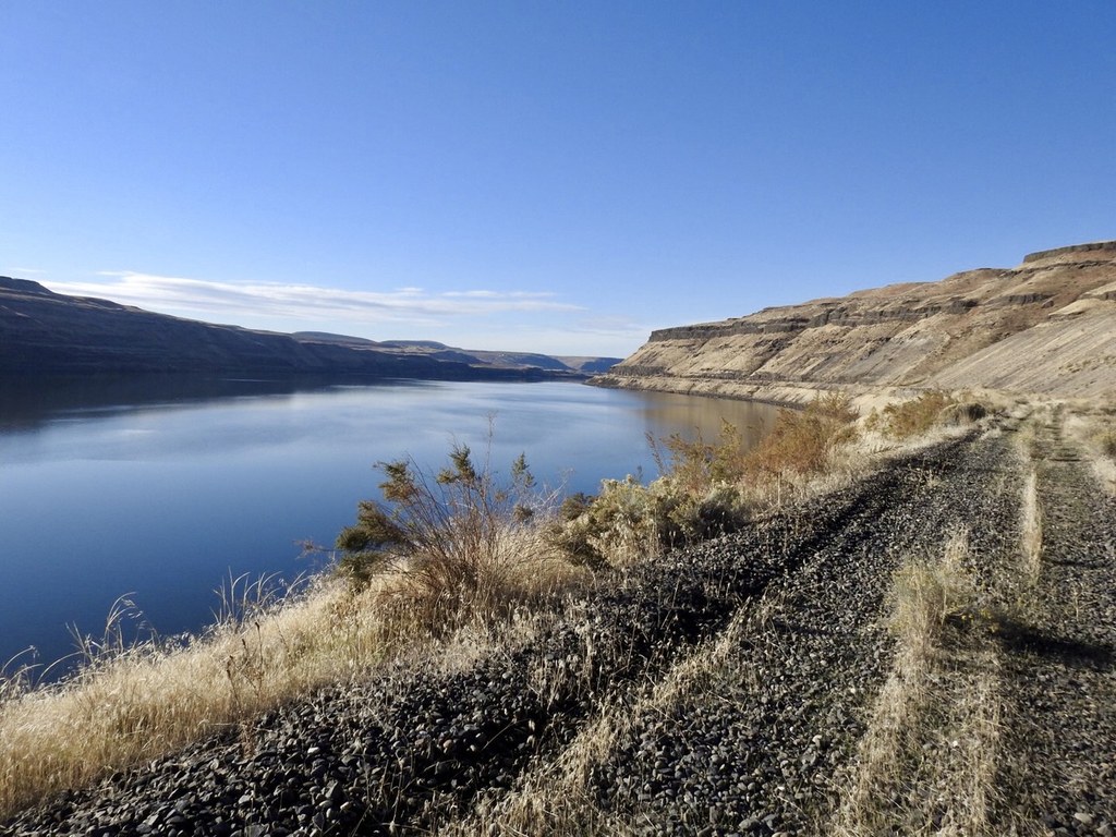 For a pleasant stroll for all ages, follow the east shore of the Snake River and admire anglers — both avian and human — at work in the shadeless landscape. Most foot travelers turn around at Burr Canyon Road; beyond here, the railroad ballast begins to bear down on hikers’ boots.