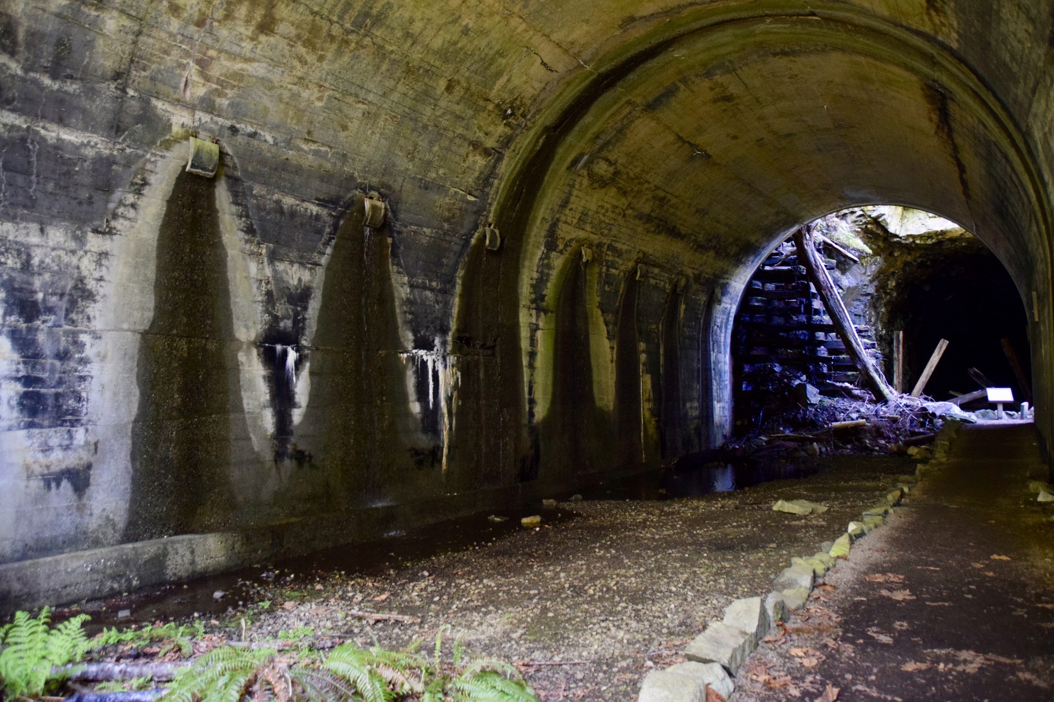 The old railroad grade and its tunnels were abandoned in 1929 in favor of the current Cascade tunnel, and what was left has been crafted into the Iron Goat Trail. When you're walking the trail, imagine being perched up there in a rickety old train, watching the snow accumulate outside.