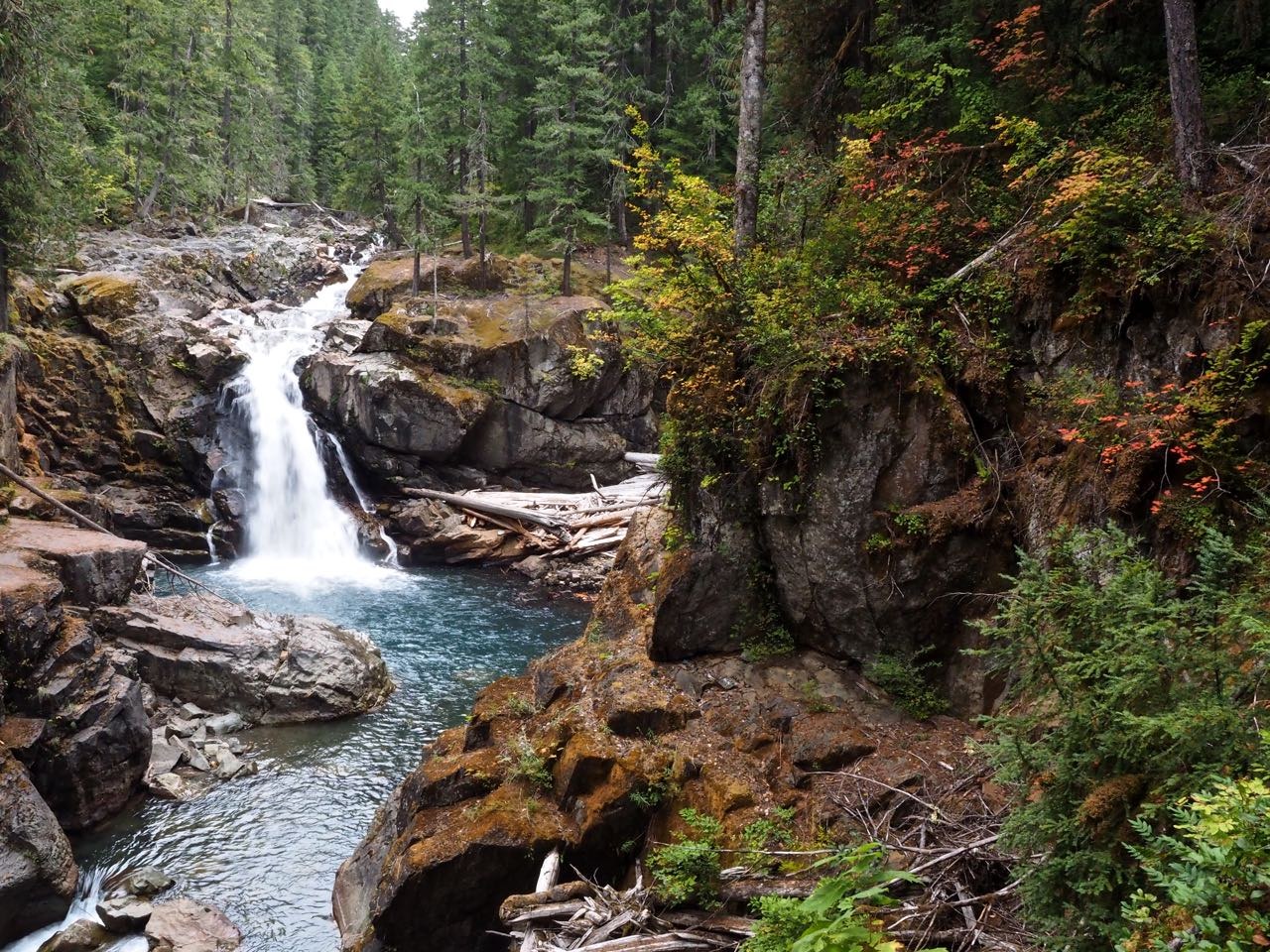 While 3000 feet isn't exactly a low elevation hike, this trail remains the perfect rainy-day hike for families or beginners well into fall. The one-mile (stroller and wheelchair-friendly) loop will stun you with brilliant fall color and salmon spawning. More experienced hikers can add on a trip up the nearby Gold Creek-Alaska Lake trail.