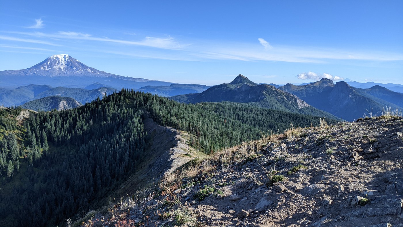 Photo of Sunrise Peak and Mount Adams from the ridge in September. Photo by trip reporter mcblain.