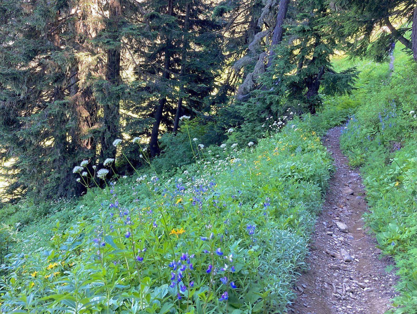 Views from here are of the Canadian mountains, Canyon Creek Valley, Tomyhoi Peak and Bearpaw Mountain as well as Mt. Baker.
