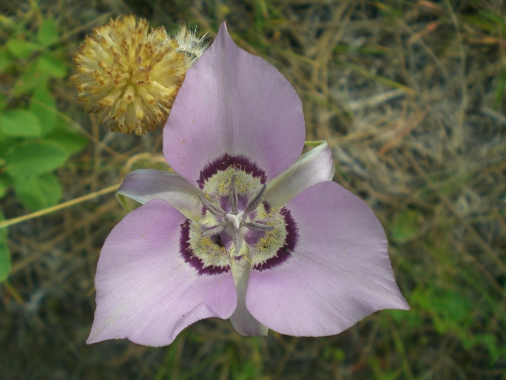 At the summit of Mill Butte I was divebombed by mystery birds, which I later determined to be nighthawks by the white band on their wings. The parents were the ones feigning attack, and they were protecting two or three babies (just starting to fly). It was a nice surprise in addition to the view from the top. On the way back down, I found a single mariposa lily growing along the side of the trail; I was not aware that they grew here.